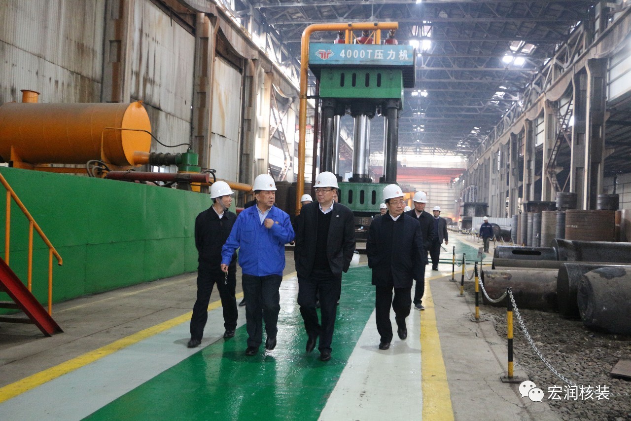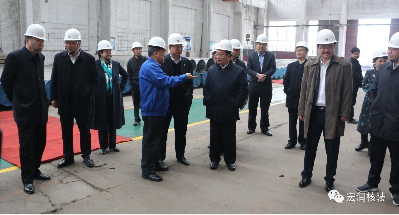 4月11日,河钢集团有限公司党委常委、副总经理、首席技术官王新东带领集团物流、钢研总院、唐钢、邯钢、舞钢、石钢、军工部等部门领导来宏润核装考察调研,并进行了深入的交流座谈;沧州市人民政府副市长梁英华、刘强,沧州市人民政府副秘书长肖华,盐山县人民政府县长丁清波、政府办主任张叔庆,宏润核装董事长刘春海、总经理刘强等陪同。