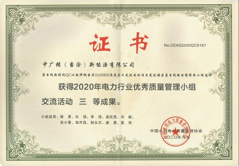 ▲中广核新能源安徽分公司荣获全国电力行业QC成果奖