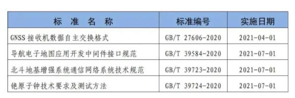 2020年第28号公告中发布的4项北斗标准