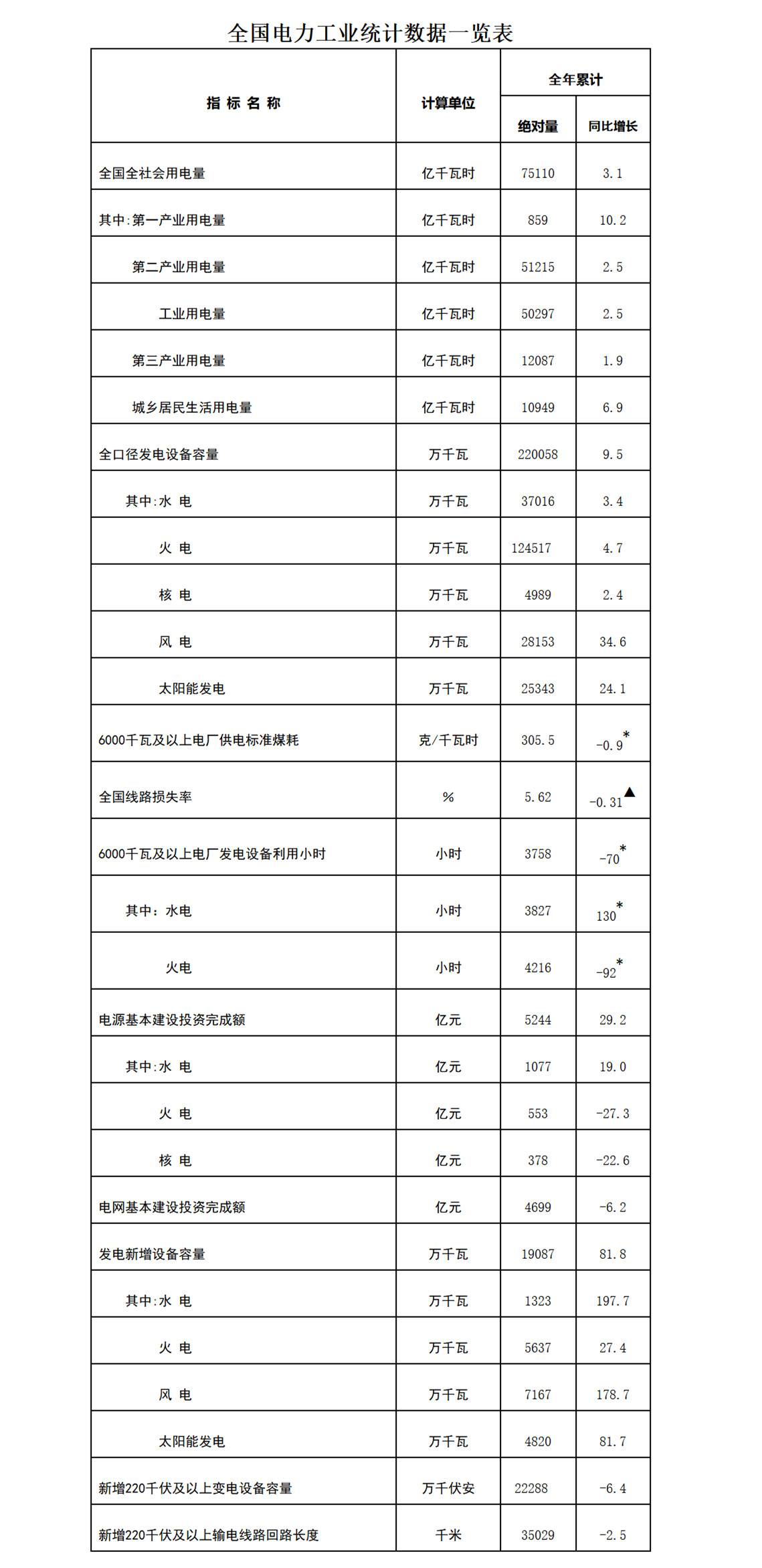 1月20日,国家能源局发布2020年全国电力工业统计数据。