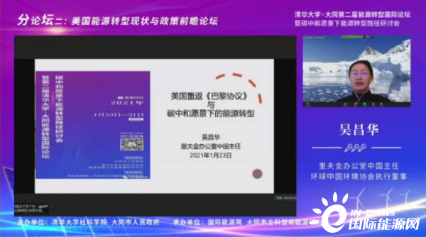 里夫金办公室中国主任、环球中国环境协会执行董事吴昌华以美国重返《巴黎协定》这一事件为主线,介绍了在全球气候变化挑战加剧之下,实现碳中和是大势所趋,吴昌华表示,美国回归《巴黎协定》对于全球能源转型具有积极意义。