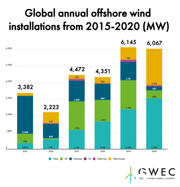 GWEC市场信息与战略总监赵锋说:“全球海上风电产业在疫情期间依然保持增长,证明了该行业的韧性。首先受到新冠疫情冲击的中国,在去年3月就开始恢复正常生产,海上风电整体受疫情影响很小。2021年是中国海上风电中央补贴的最后一年,海上风电建设热潮将会继续。”