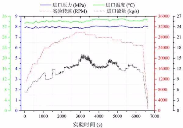 科研人员对测试平台进行了改进,优化了压缩机实验循环系统,使得实验进口状态始终稳定在设计参数(8MPa,35℃)附近;改进了压缩机进口状态测量方法,采用间接测量法,极大地提高了压缩机进口温度测量精度及响应特性,进口温度间接测量误差小于0.025℃,远小于现有A级温度传感器测量误差。